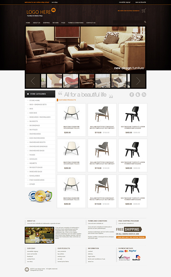 - A complete ebay store with matching fully mobile responsive ebay listing template.